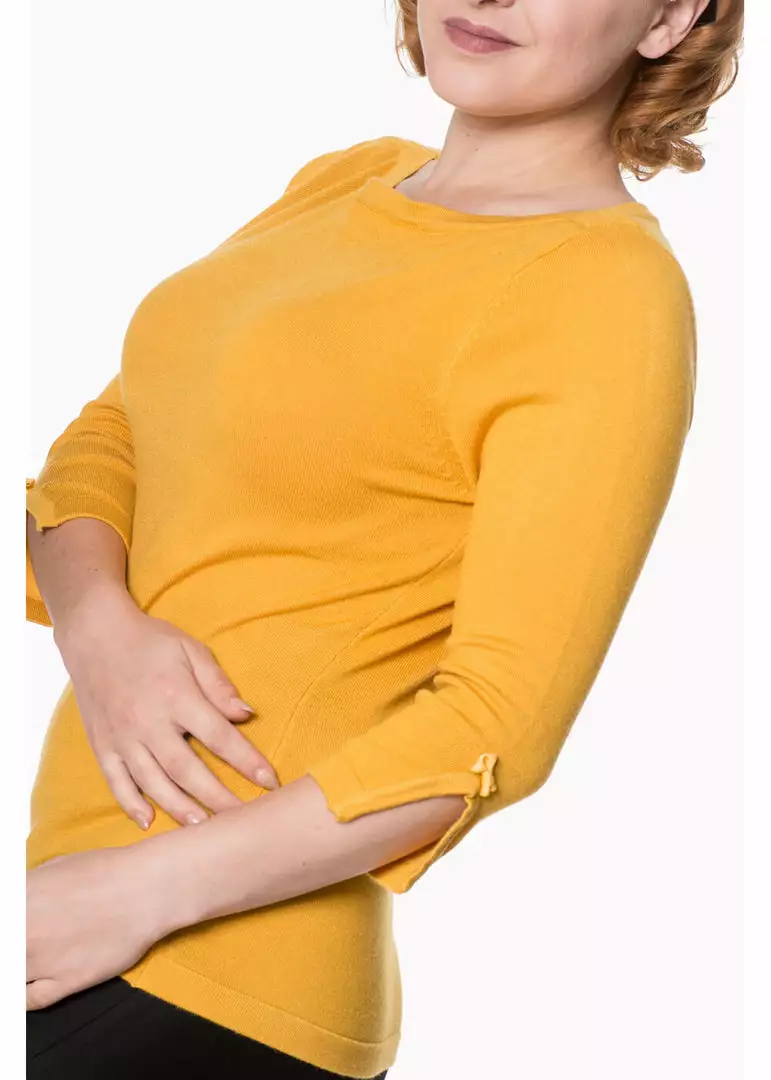 Banned makes sure that even basics have plenty of adorable details. This sweater is no exception, the sleeves have tiny cut-out decorated with an adorable little bow. A subtle detail that really gives the top something extra. The viscose mixture, doesn’t only keep you warm , it also has some stretch, making this cardigan perfect for everyday wear.