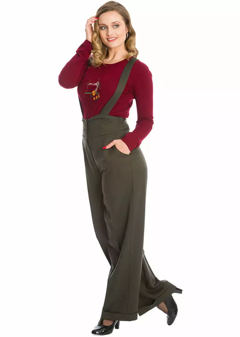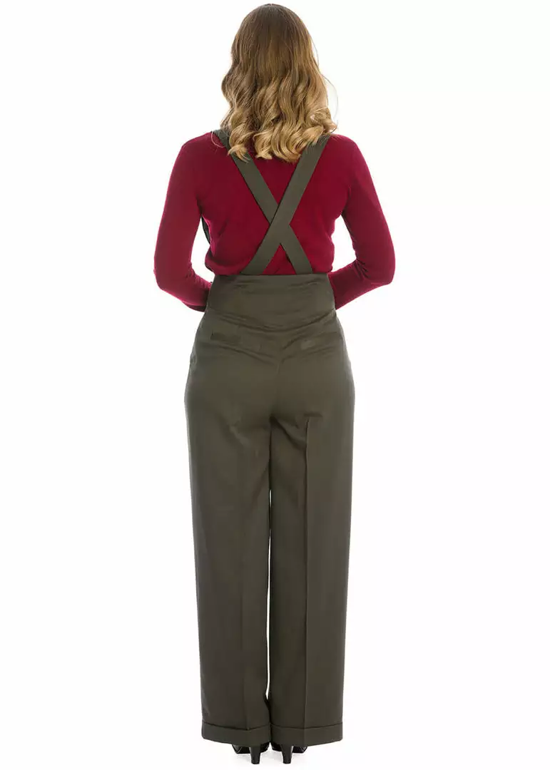 Inspired by classic men’s fashion, she makes for an invincibly feminine look, whether you wear her with an elegant 40’s blouse or a cozy turtleneck! Her high waist has an elegant, slightly curved shape and is decorated with lovely buttons, which she also closes with (together with the front zip). Her suspenders are adjustable and removable with buttons, as if anyone would want that 😉