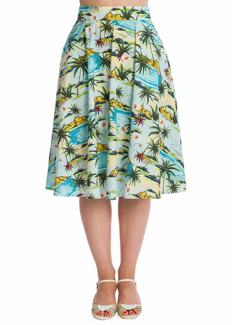 Banned Tropical Palms 50’s Swing Skirt Green New In