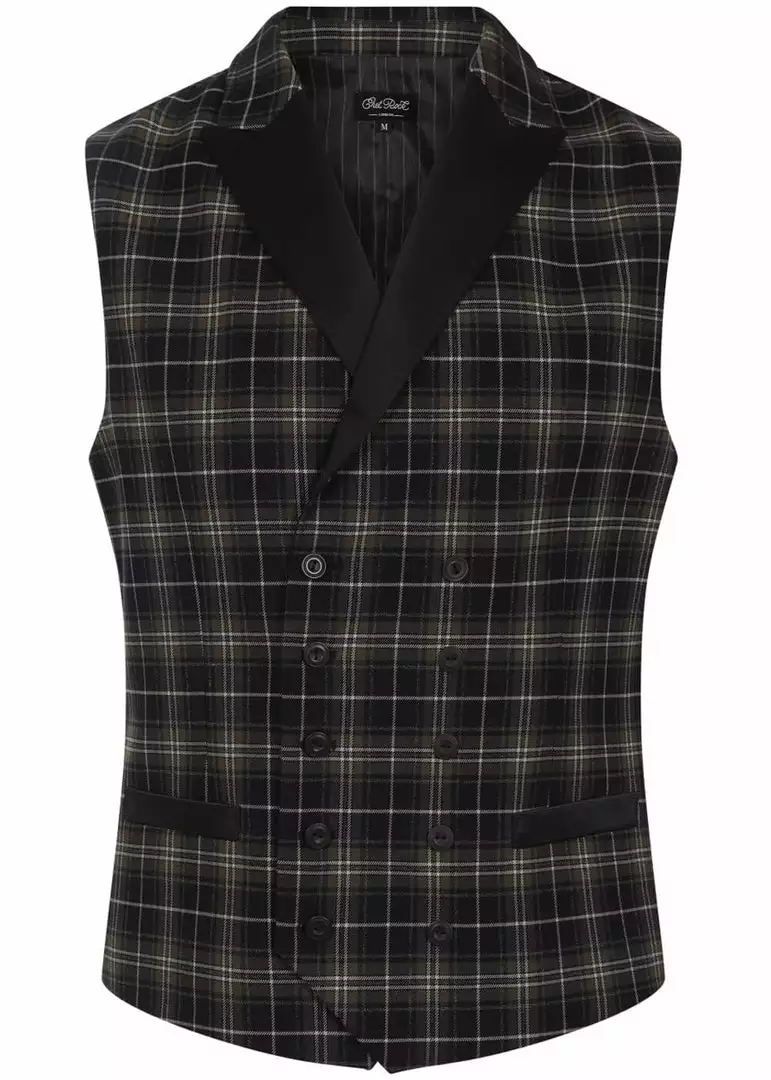 Chet Rock Mens Chuck Tartan Waistcoat Green New In