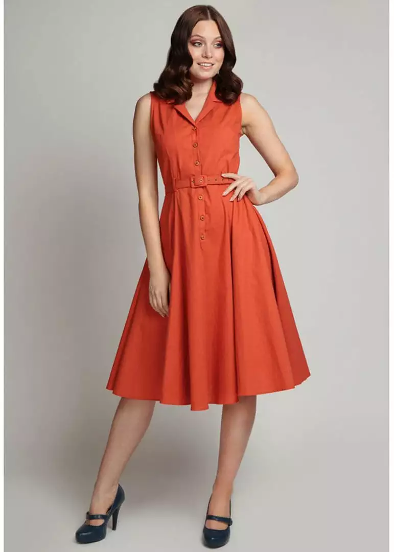 Collectif Caterina 50’s Sleeveless Swing Dress Orange New In