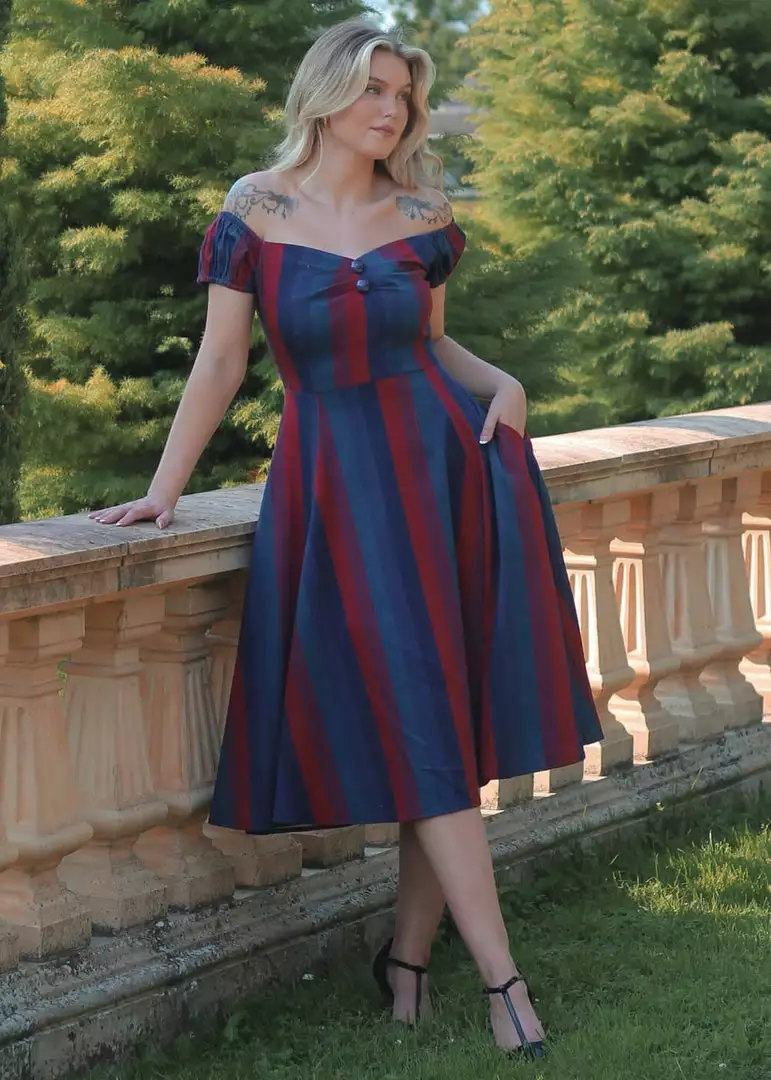 Dolores is THE Collectif classic and now extra romantic with navy and burgundy stripes!