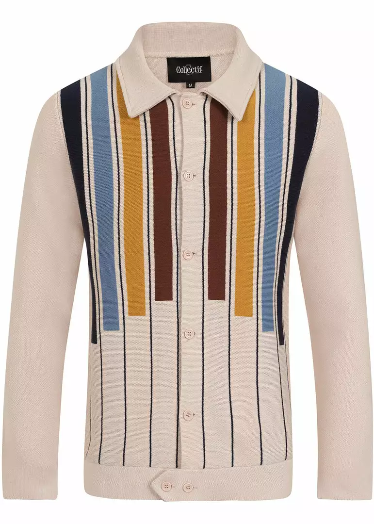 Collectif Men Luca Earth Stripe 50’s Cardigan Cream New In