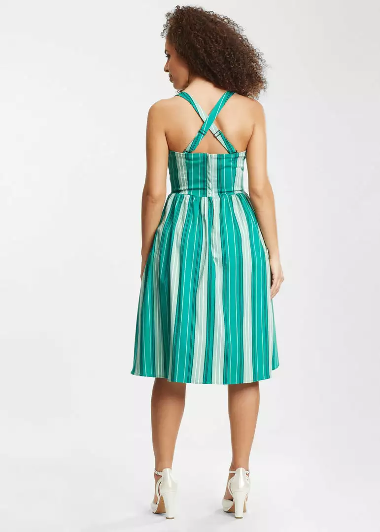 With stripes in such happy colours, everything you mis is a delicious drink! Her almost straight neckline transforms into adjustable shoulder straps, that playfully cross each other in the back. this beauty is made of a lovely lightweight cotton-mix with slight stretch, so you have a great excuse to put her on every day 😉
