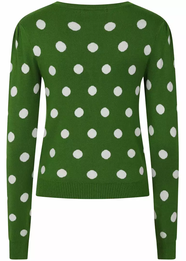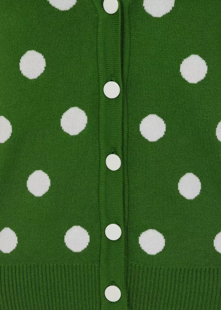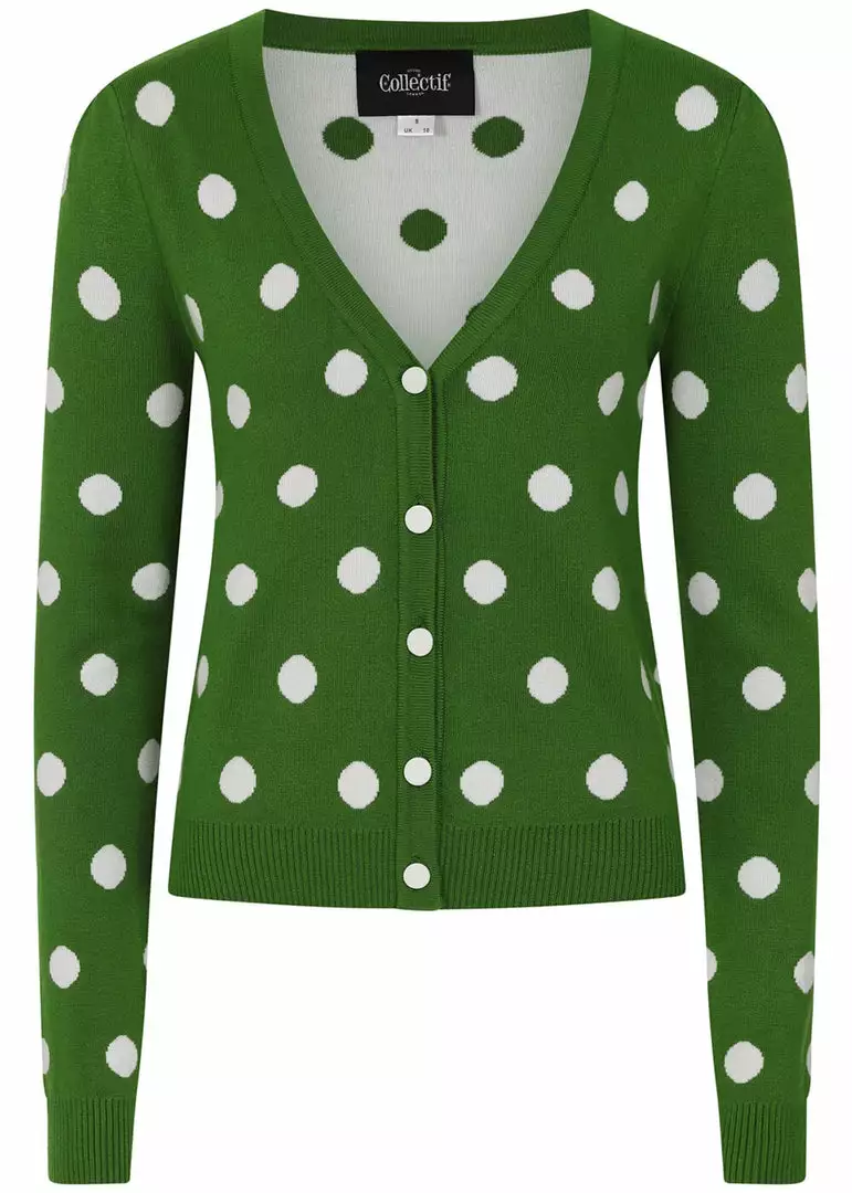 Collectif Violet Painted Polka50’s Cardigan Green