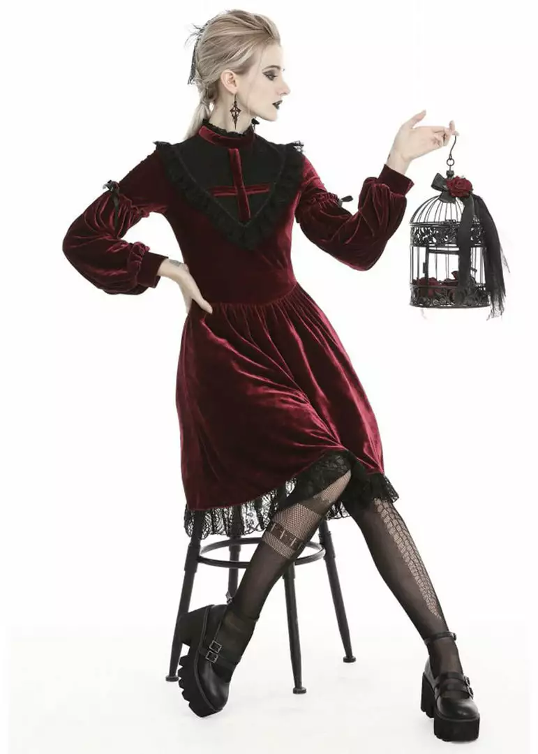 Dark In Love Ghost Cross Velvet 60’s Dress Blood Red