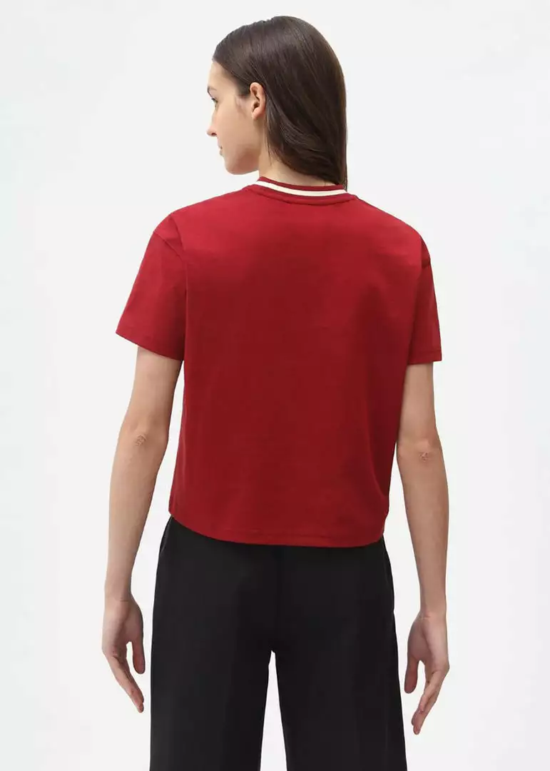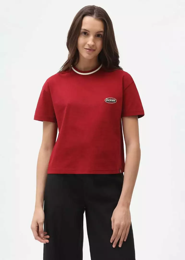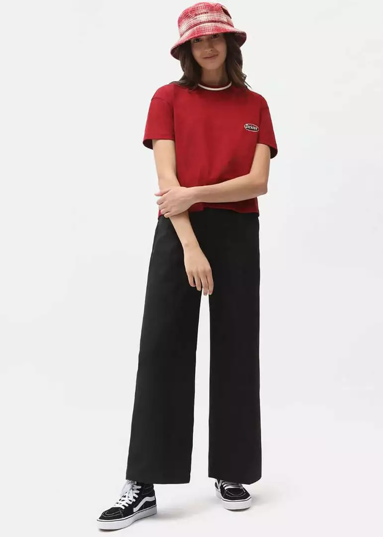 Quality can be seen all throughout the Dickies collection and t-shirts are no exeption! Her just a tad shorter length gives her a sporty look, which you can also wear with a pencil skirt for an extraordinary look. This ladies t-shirt has a relaxed, not formfitting fit and is made of 100% cotton with a slight stretch to ensure ultimate comfort when wearing. The Dickies label on the bottom can’t lack ofcourse.