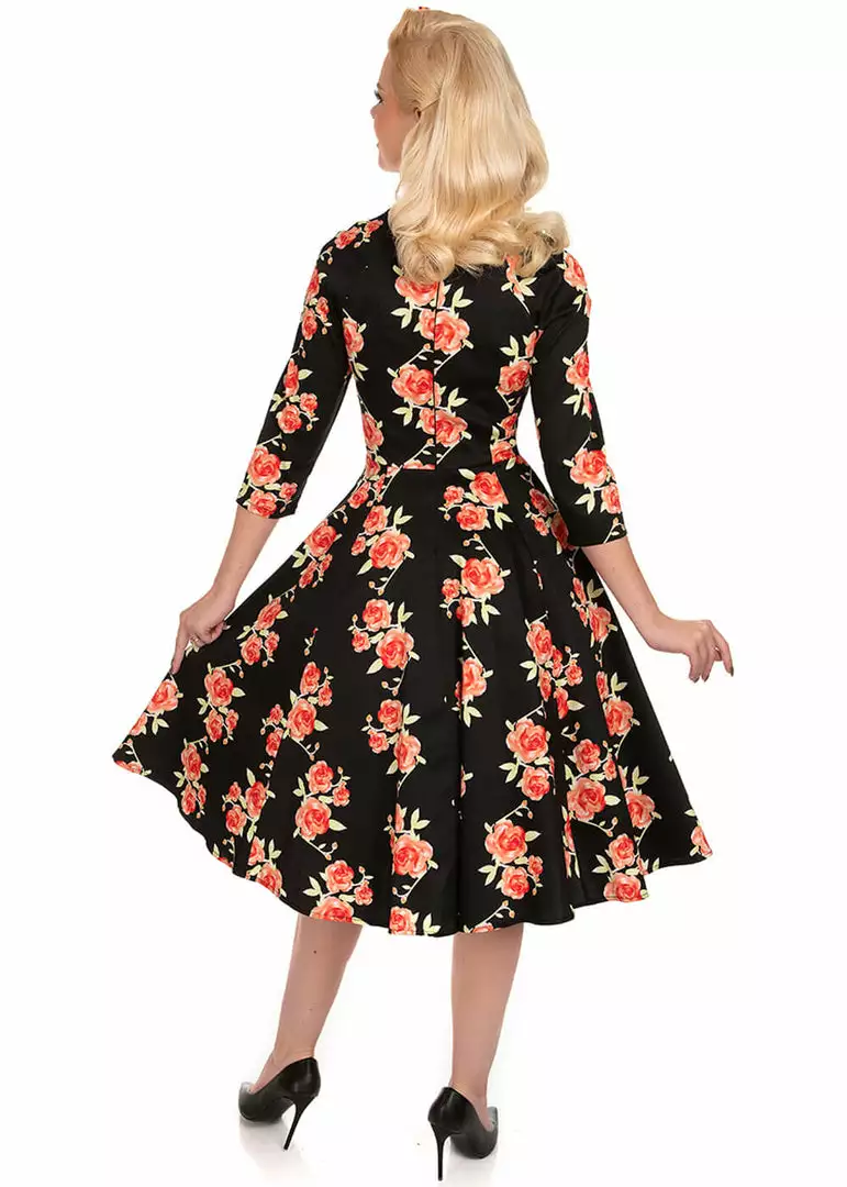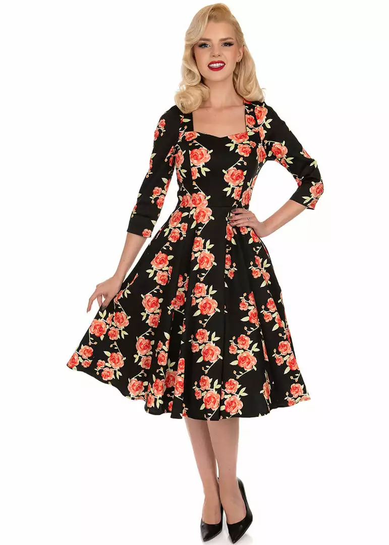 This beauty is pure vintage romance with her cotton mix with slight stretch and romantic pink roses. The heartshaped neckline and the Princess seams make for an irresistible look.