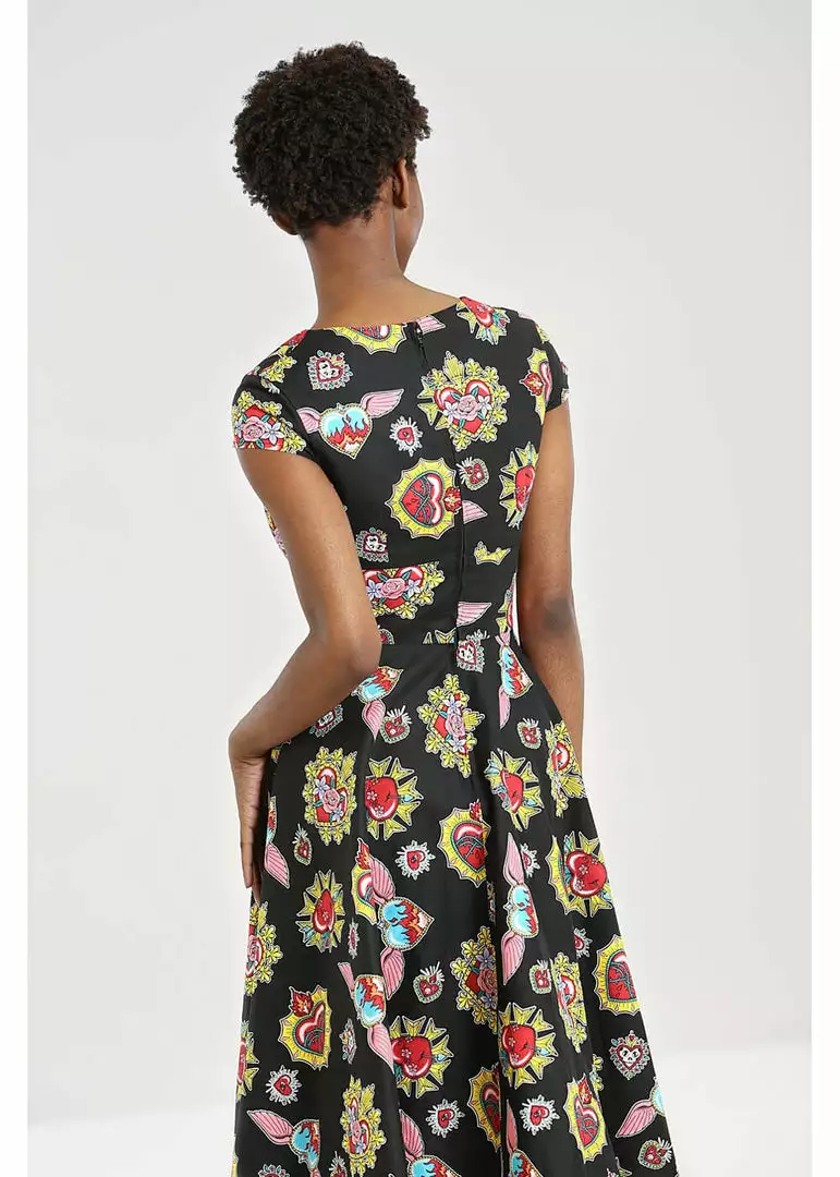 She almost looks like a bolero with her playful cap sleeves! The heart-shaped neckline has an elegant gathering in the middle, for an extra charming bosom 😉 Her lovely cotton-mix has fine stretch, so she’s lightweight to wear and fits beautifully.