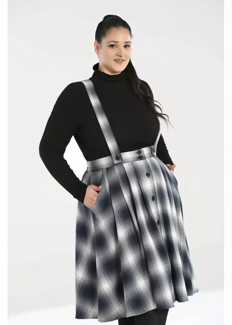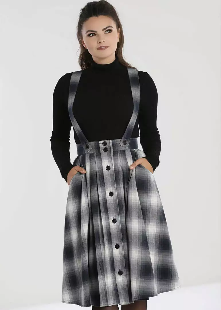 Hell Bunny Eddystone Pinafore 60’s Swing Skirt Grey New In