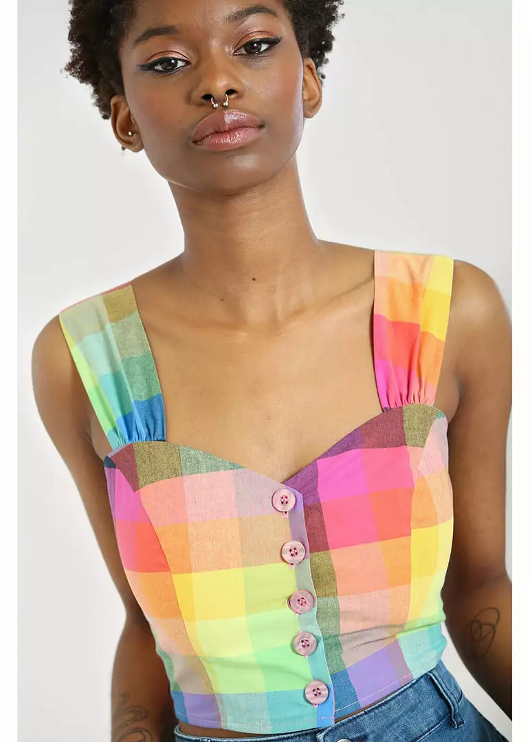 She could have walked straight out of Grease, with her sweetheart neckline, wide schouderstraps en cute functioning buttons! Her lovely cotton-mix has fine stretch, so she’s lightweight to wear and fits beautifully.