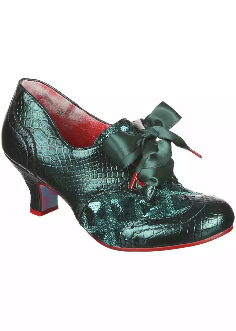 Her soft footbed is covered in a layer of velvet, which makes her even more comfortable. The heel of 5,5 cm is lovely to walk on and the sole is covered with a playful print, that you can preserve with the special Irregular Choice Sole Protectors.