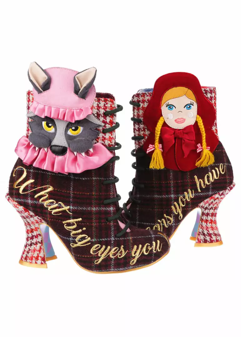 The boots themselves are super stylish for autumn, with tartan and houndstooth on lovely warm textile. Even the … cm heel is covered with it and is comfortable to walk on thanks to the soft footbed. The laces along the front complete the picture, but they’re closing … . You can preserve the joyful print on the soles with the special Irregular Choice Sole Protectors.