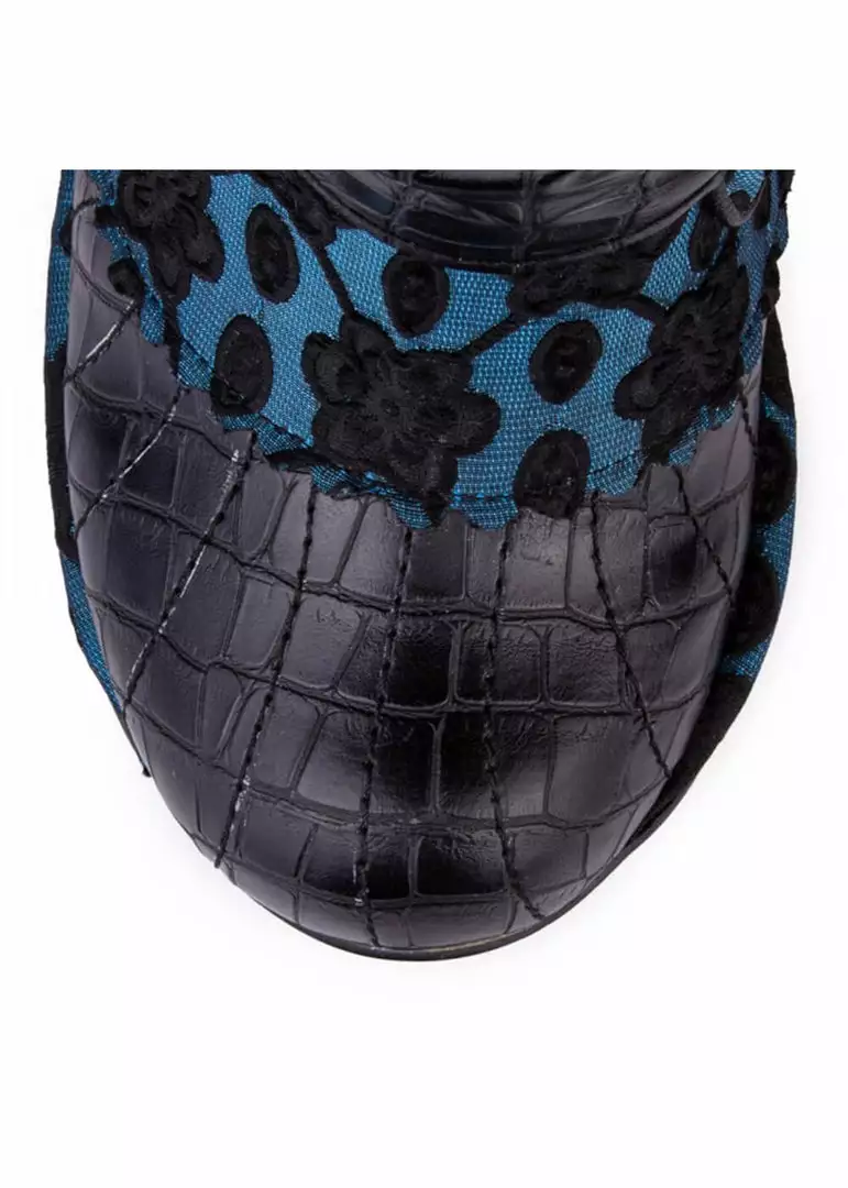 This gem is almost drowning in special details: Should we start with the rising back? Or the jaw-dropping mix of the blue base with a layer of black flower-mesh? We know: that irresistible cat charm with the sparkling eyes!