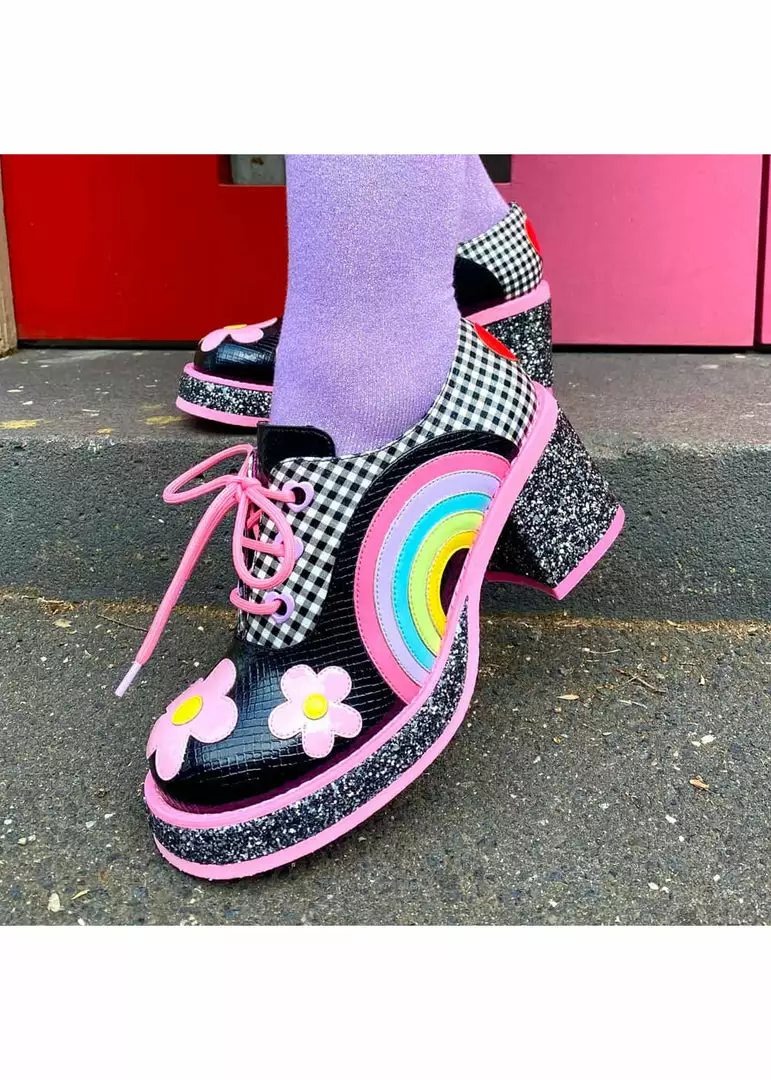 Irregular Choice Rainbows And Love 60’s Platform Pumps Black New In