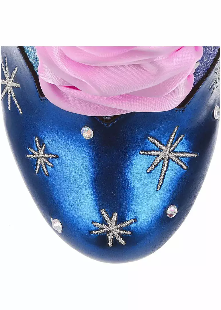 She closes with a satin lace, that, just like the 7 cm heel, is adorned with shiny metallic. The sole has a joyful print you can preserve with the Irregular Choice Sole Protectors. And besides breathtaking designs, this brand is also known for comfort with their soft footbed.
