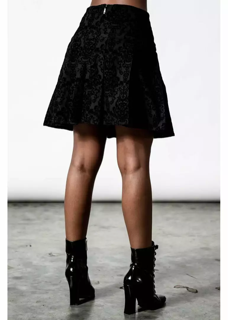 This beauty is worn in the waist, from where she flares playfully. She is made of a strong but stretchy bengaline rayon-nylon-mix that is gorgeously close-fitting, and she closes with a zipper in the back.