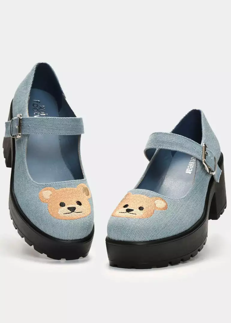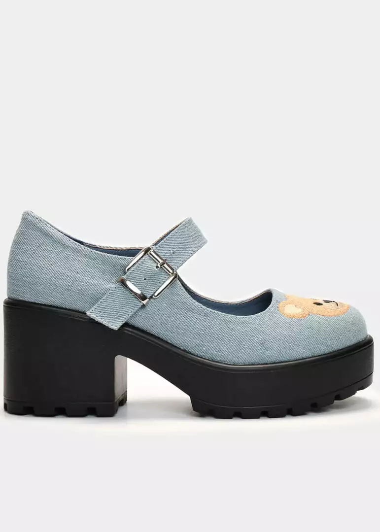 Koi Footwear Bear Denim Mary Janes 60’s Pumps Blue