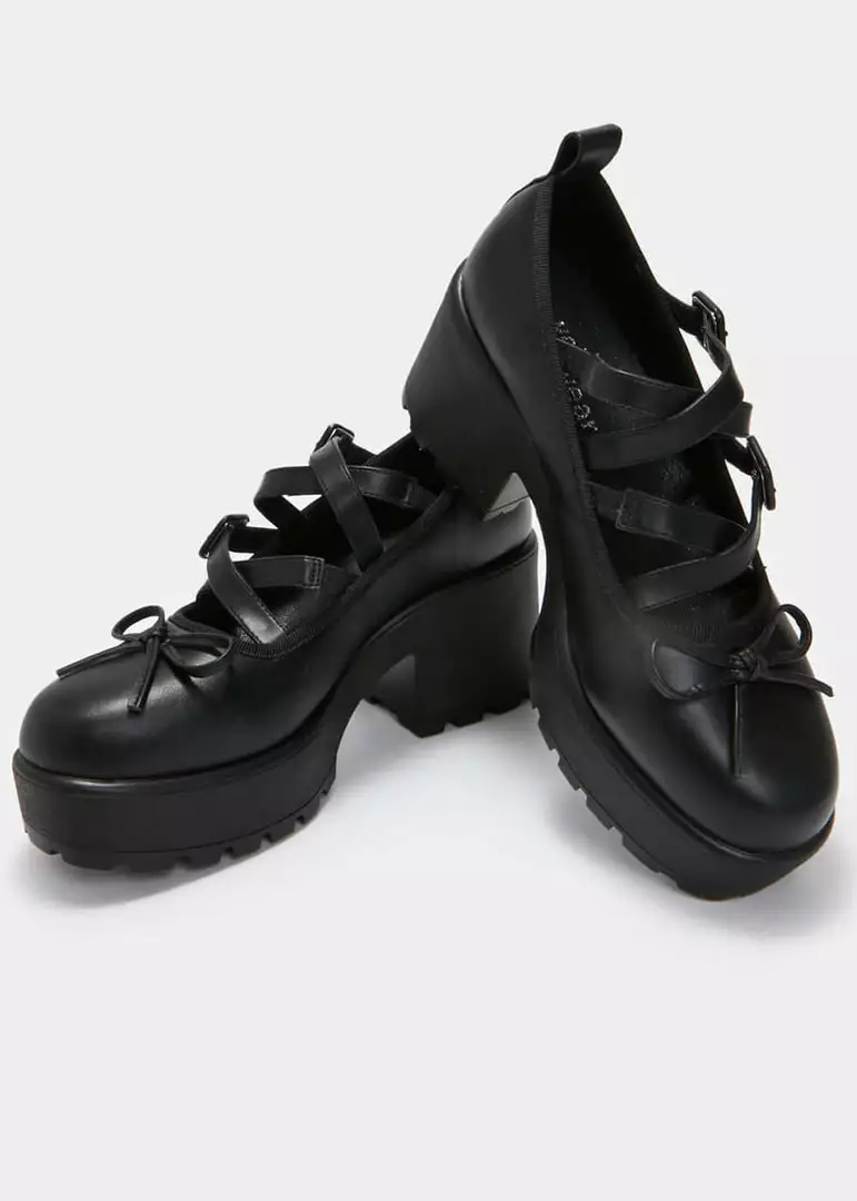 Margot is exactly the type of Mary Janes you’ve always wanted, with her crossed adjustable straps with buckles and bows! The heel is 7,5 cm, so without the 5 cm platform there’s only a height difference of 2,5 cm, how lovely 😉 The outside is covered in faux-leather, which, just like the rest of the shoe, is 100% vegan.