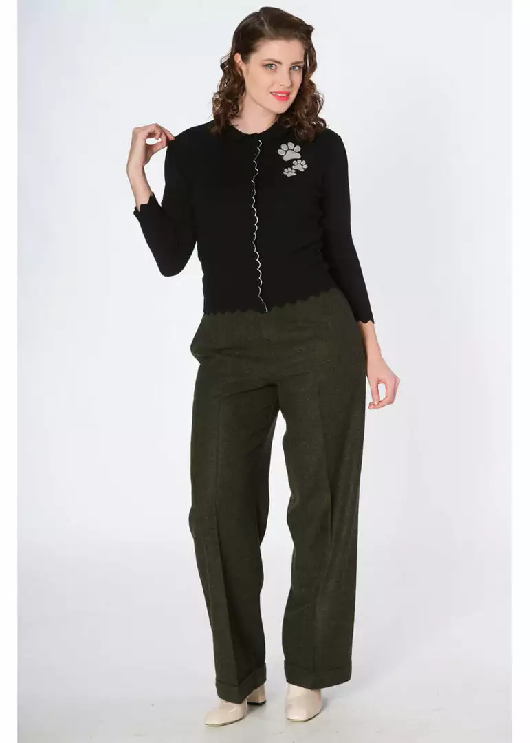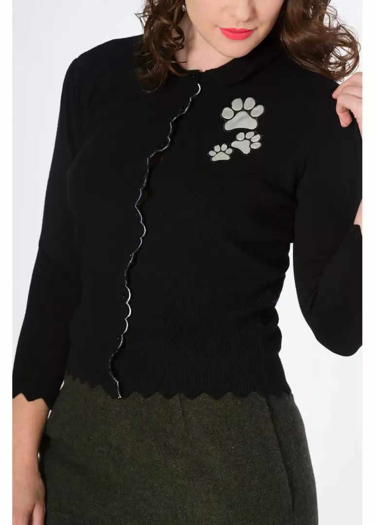 Follow the playful pawprints! Just like we’re used to from Banned, this beauty is made of a lovely soft viscose-mix, that wears heavenly and gives her a slight stretch. She closes with smooth buttons in the front. The ribbed seams on the sleeves and at the bottom keep the warmth.