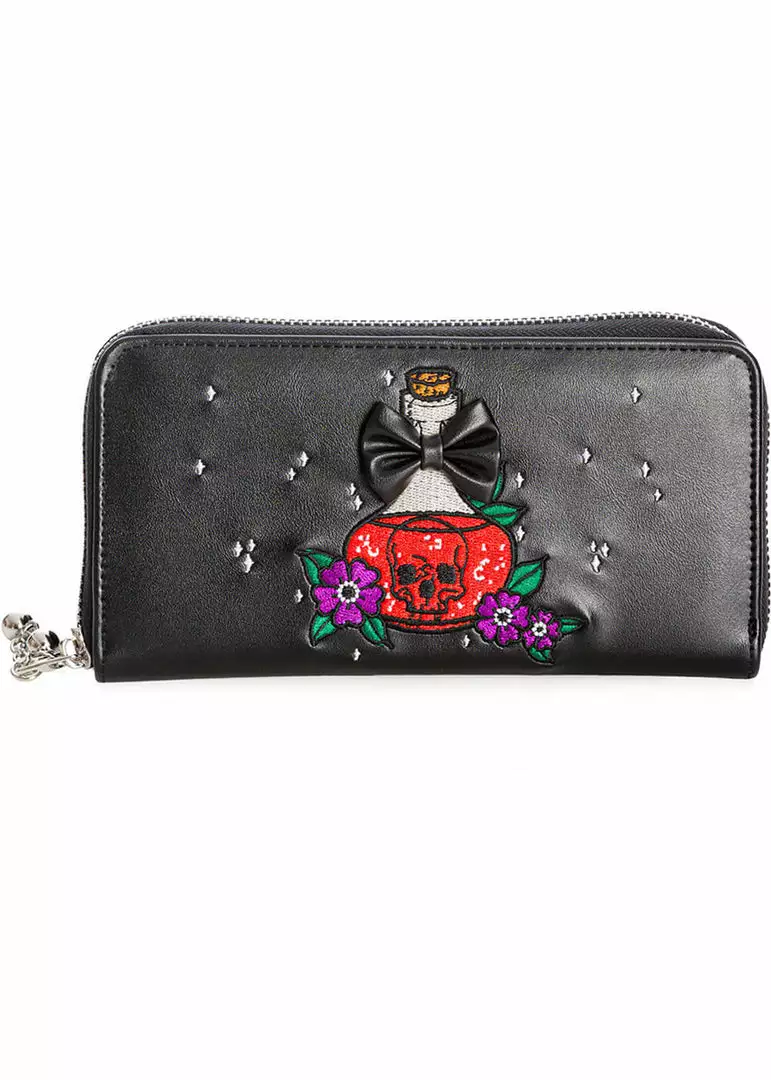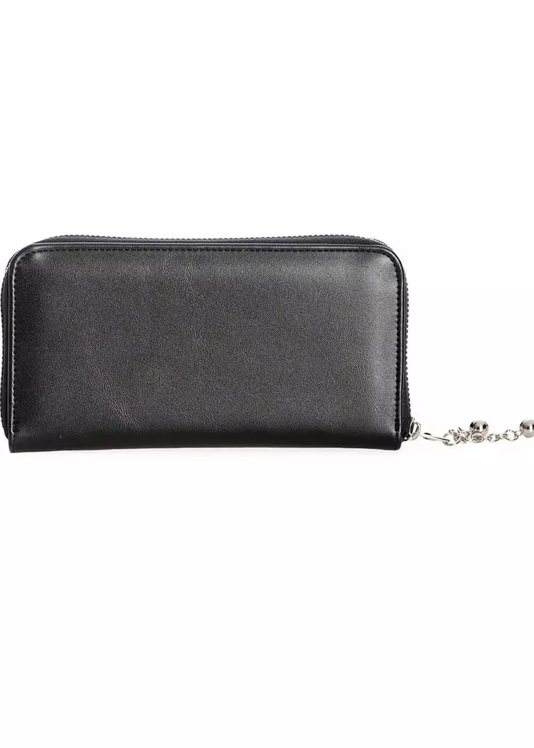 With her 19 cm width, she’s nicely spacious and closes with a zipper all around. She has slots for 8 cards, two long compartments for bills or notes and a zipper pocket for change. this wallet is made of a high quality faux-leather.