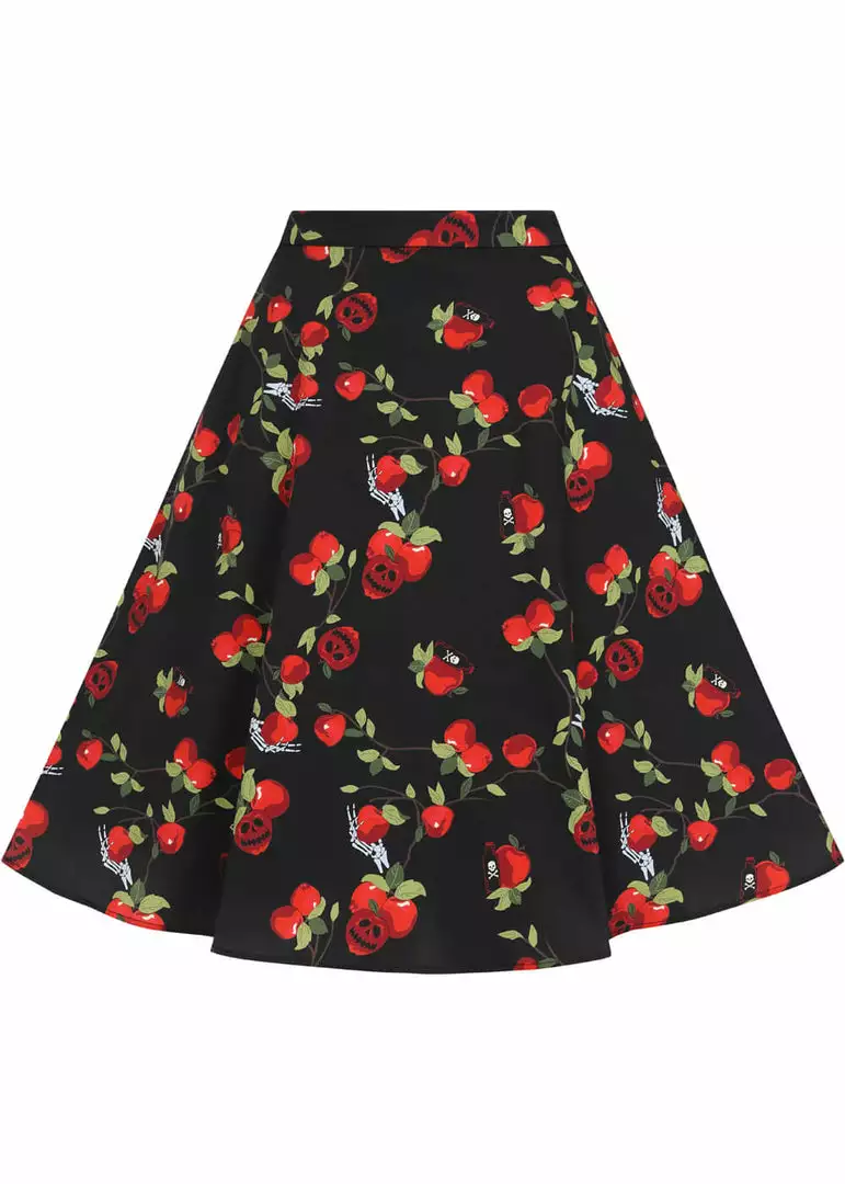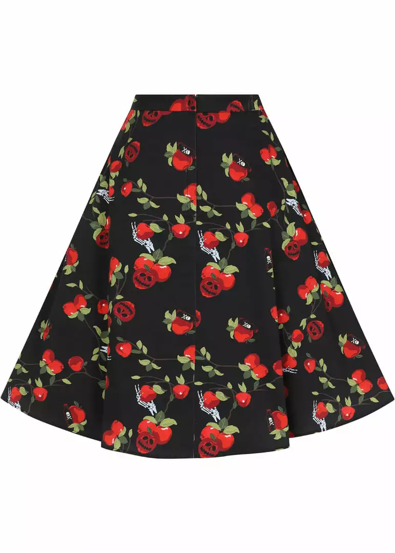 This beauty flares from the non-stretchy waistband into a full skirt with pockets, taht you can beautifully wear with one of our petticoats. She ends below the knees for a height of 1.70m and closes witz a zipper in the back.
