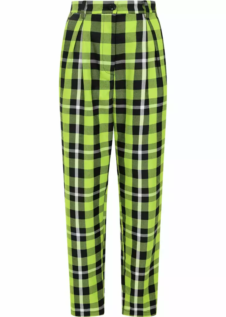 A playful 60’s Mod look in the blink of an eye with Rada and her black, grey and jade green check pattern! The waist is close-fitting, from the waist downwards the model is relaxed. Best of both worlds 😉 She closes with a zipper and a button in the front.