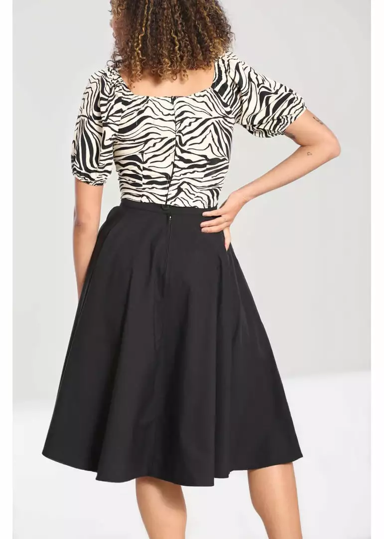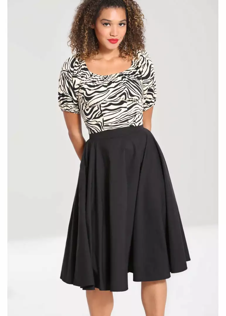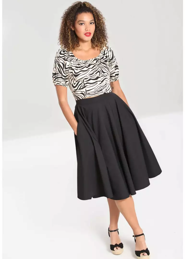 Of course she is perfect to be worn with one of our petticoats for the total vintage-look. For a height of 1.70 m, she falls over the knees, and she closes with a button and zipper in the back.