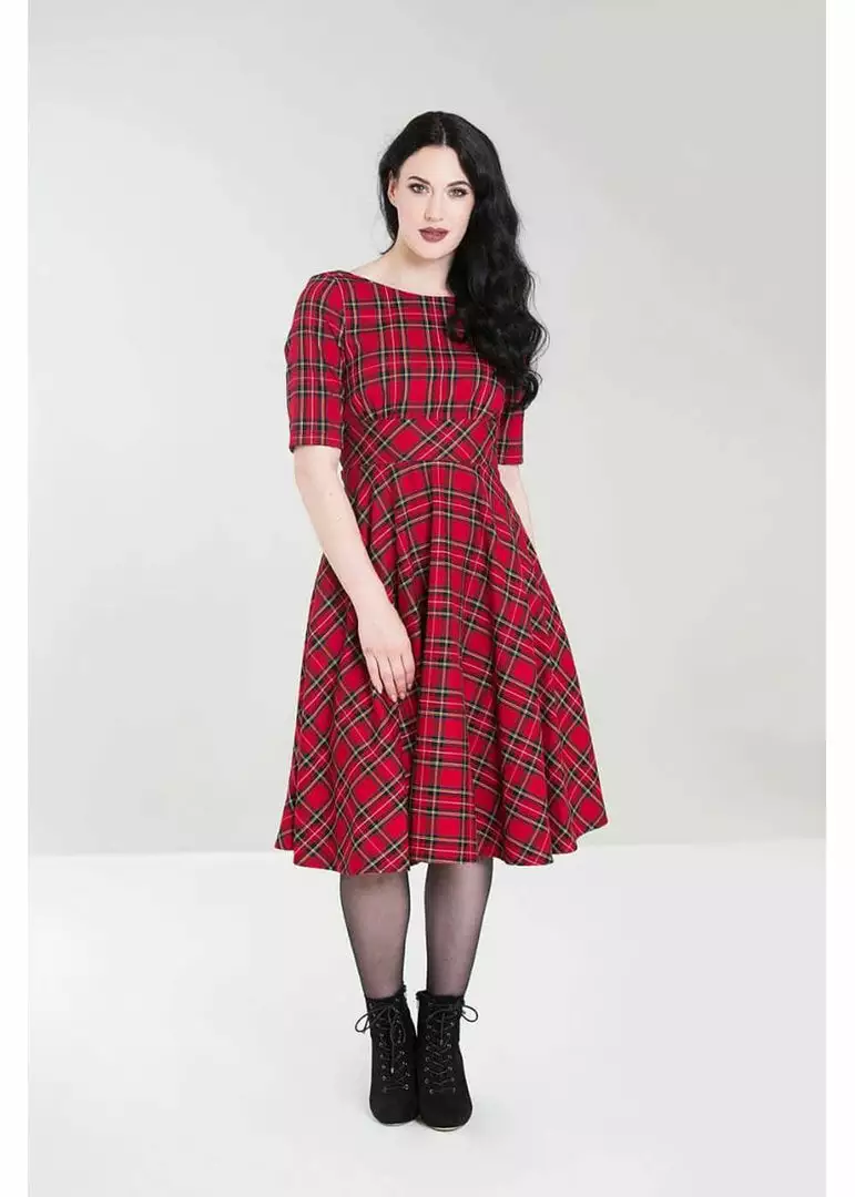 Irvine is bound to become your go-to dress this fall! The stylish tartan fabric has a slight stretch and with her 3/4 sleeves she’s perfect for colder days. The darts on the bodice and the v-shape on the neck give it a lovely fit.