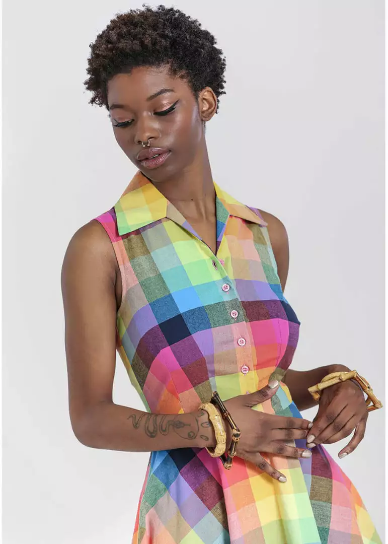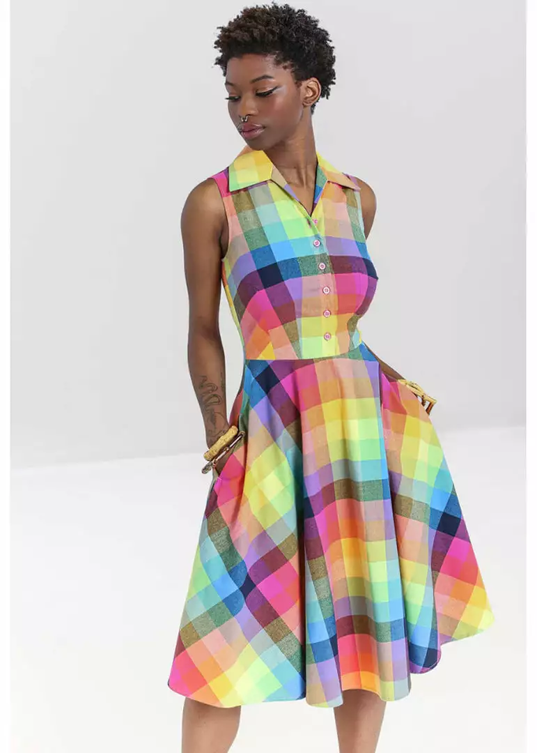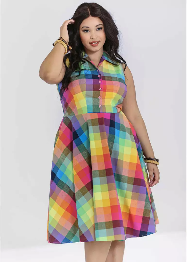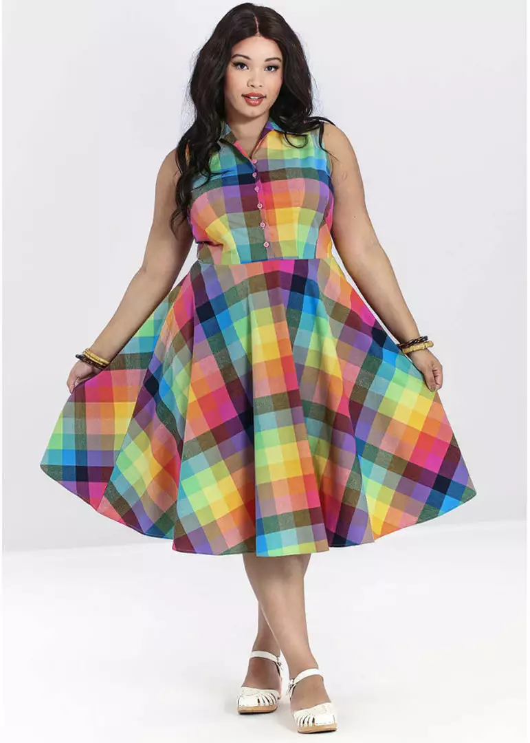 She could have walked straight out of Grease, with her collar and functioning buttons at the front… Her lovely cotton-mix has fine stretch, so she’s lightweight to wear and fits beautifully.
