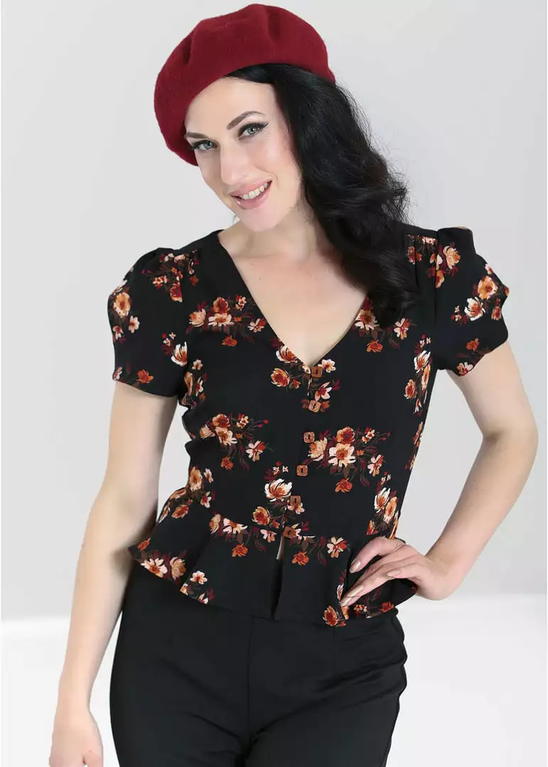 What is your favourite detail: the square buttons she closes with, or the slightly puffy sleeves? Or maybe the cute peplum, that flares playfully from the waistband? Luckily, you don’t need to choose! The 100% viscose have no stretch and are nicely breathable.
