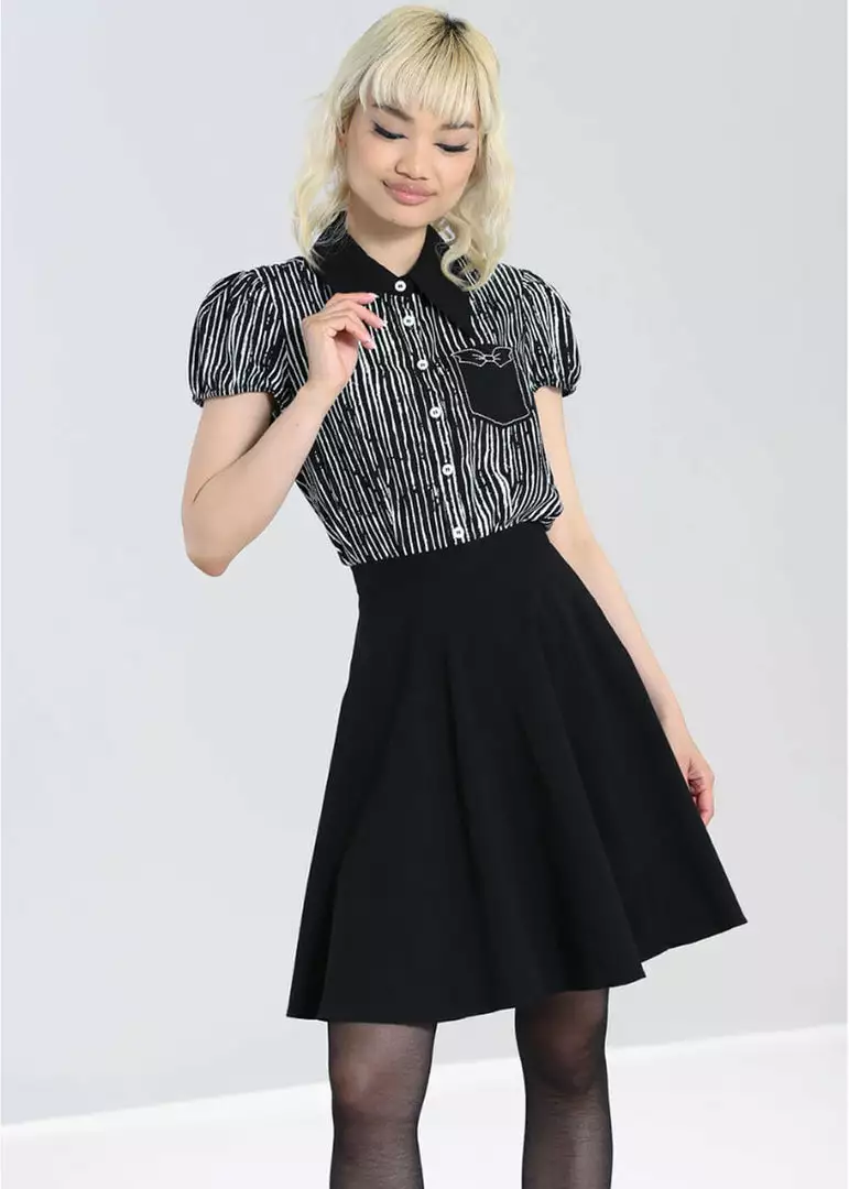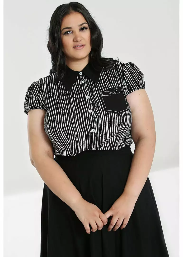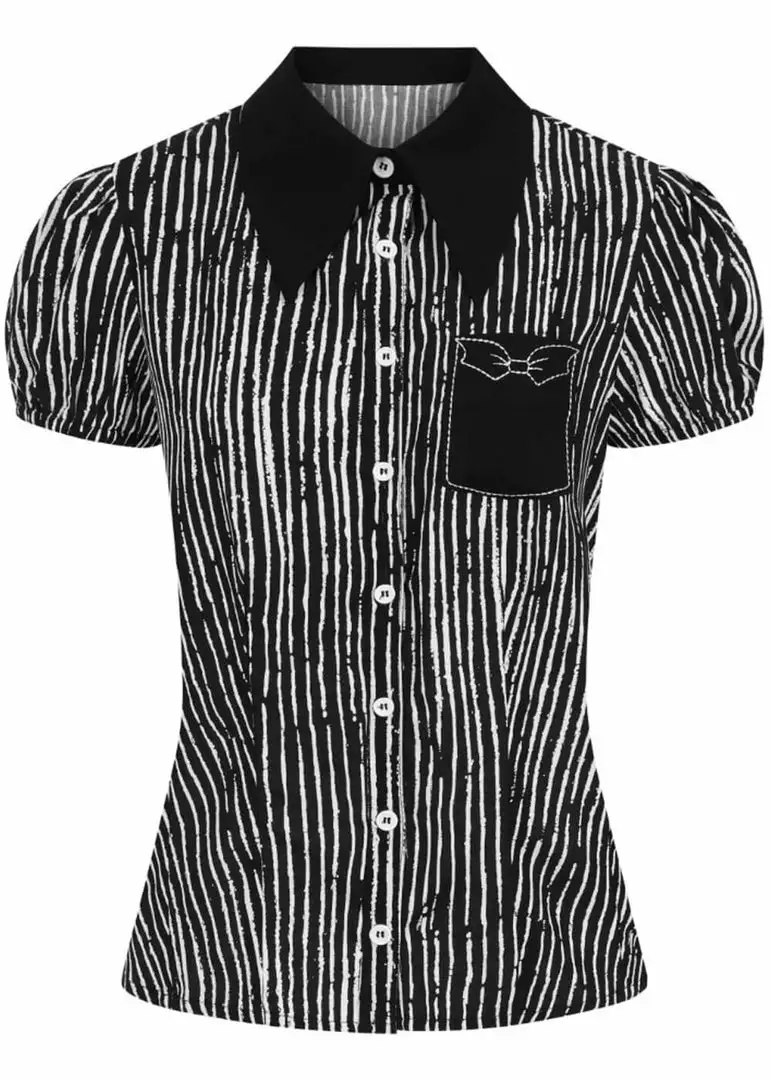 This beauty is relaxed model which shapes gorgeously thanks to her seams and closes with smooth buttons. Her short sleeves puff up playfully and this beauty is made of breathable viscose. More than perfect for wearing with your perfect skirt, but is just as cute with a pair of cool jeans.