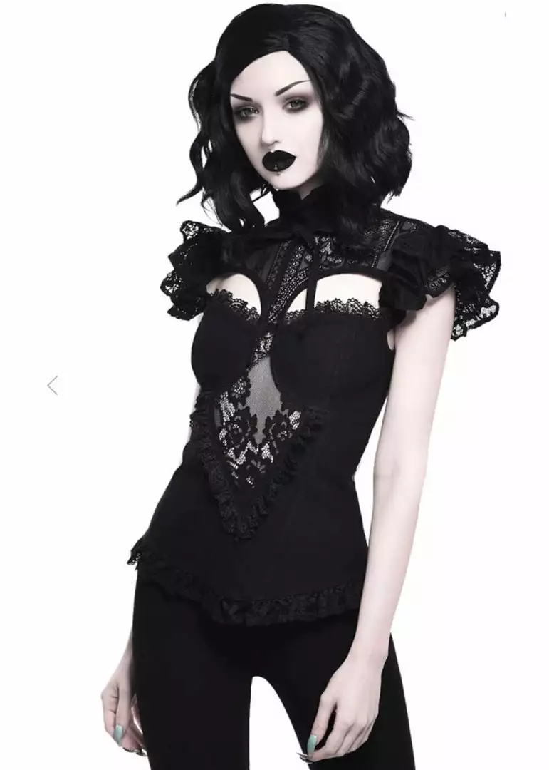The bosoms look even better than usual because of the cut-out on top of them, because of the seams and ofcourse that lace edge. Lace is also used inbetween the chest, down to the navel, oh la la!