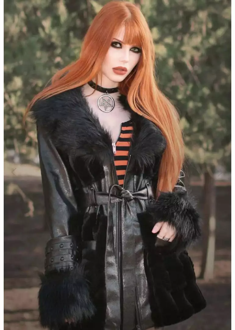 New In Killstar Krystina Faux Fur PU Coat Black