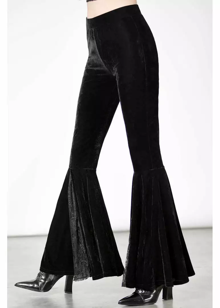 New In Killstar Marisol Velvet 70’s Flare Bell Bottoms Trousers Black