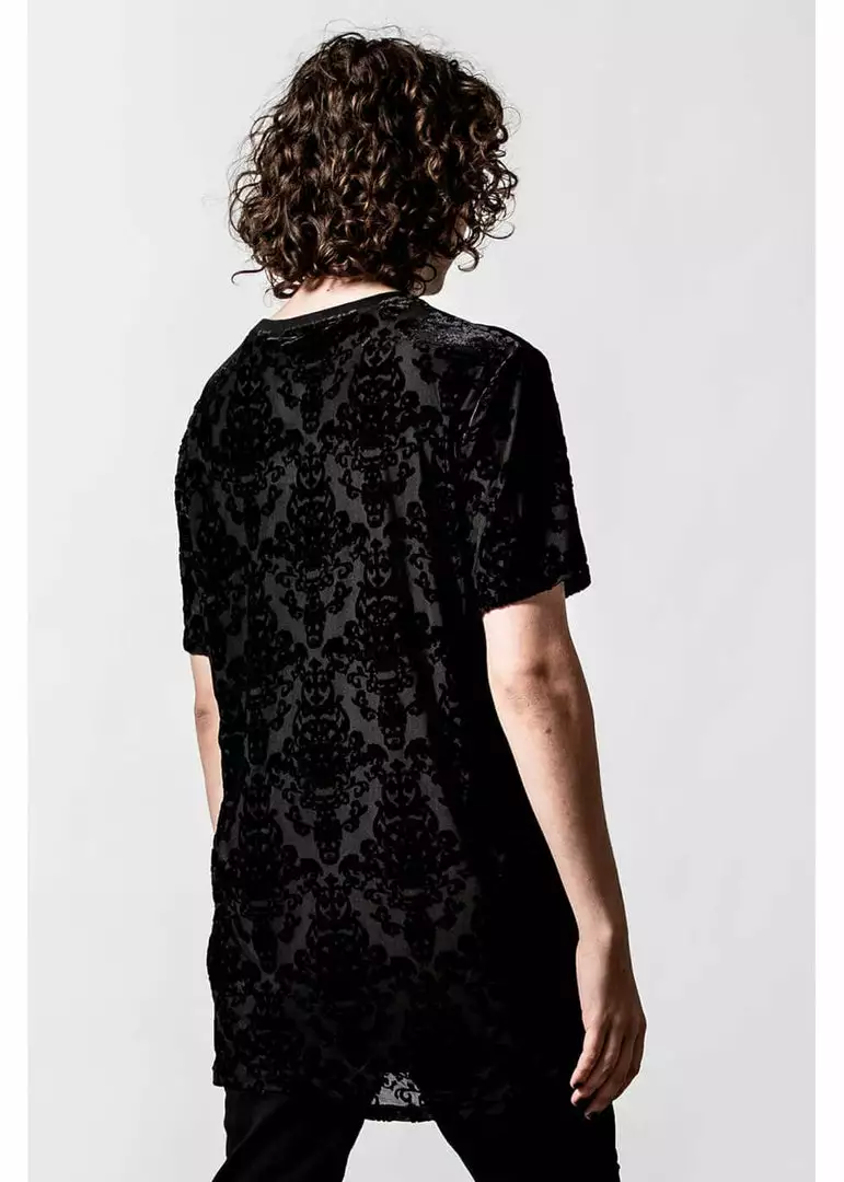 An effortless witchy look for him and her, with breathtaking burnout-velvet with stretch, that is semi-transparent around the occult velvet print.