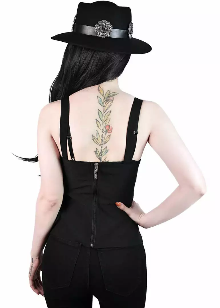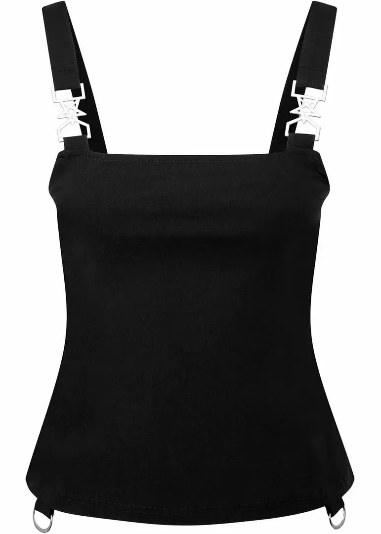It’s handy in its simplicity, yet it has a killer-detail: pentagram hardware at the shoulders! Like this, you can combine the best of both worlds. It’s made of a stretchy bengaline of a fine rayon-mix, so nothing holds you back from wearing this beauty over and over again. It’s long enough to be worn over trousers, but also abolutely cool over a pencil skirt. The model wears size XS.