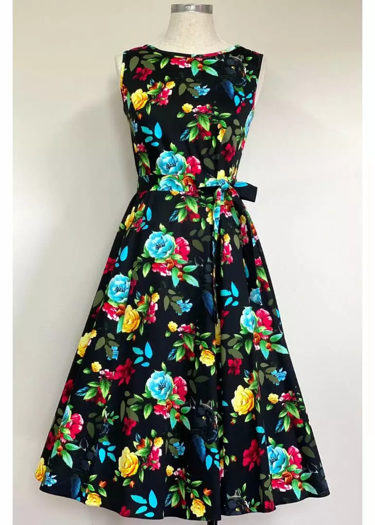 New In Lady Vintage Hepburn Panther’s Paradise 50’s Swing Dress Black