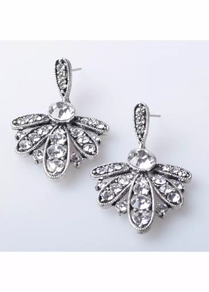 Deze bladvormige stekertjes zijn beladen met talloze kunstdiamantjes, die je van afstand tegemoet schitteren. Hun zilverkleurige zetting bestaat uit 2 delen, waardoor ze niet soepel meebewegen. Jaren ’20 of ’40, jij bent klaar voor het feestje!