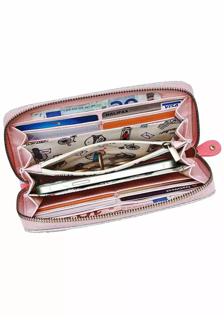With her width of 19 cm, this beauty is nicely big, so the faux-leather details can really stand out. On the inside, she has 4 compartments that even fit a small phone and a key, a 1 zipper pocket for change and 2 compartments for bills. She also has room for 8 cards, and of course the iconic Vendula lining. Thanks to the zipper all around, everything is stored safely. The back is plain coloured vegan leather.