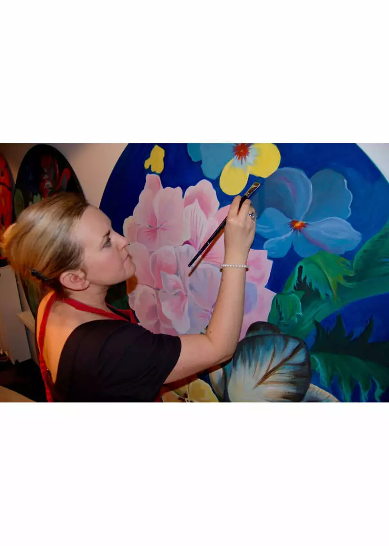 The lovely Woody Ellen turns her paintings into eye catching bags!