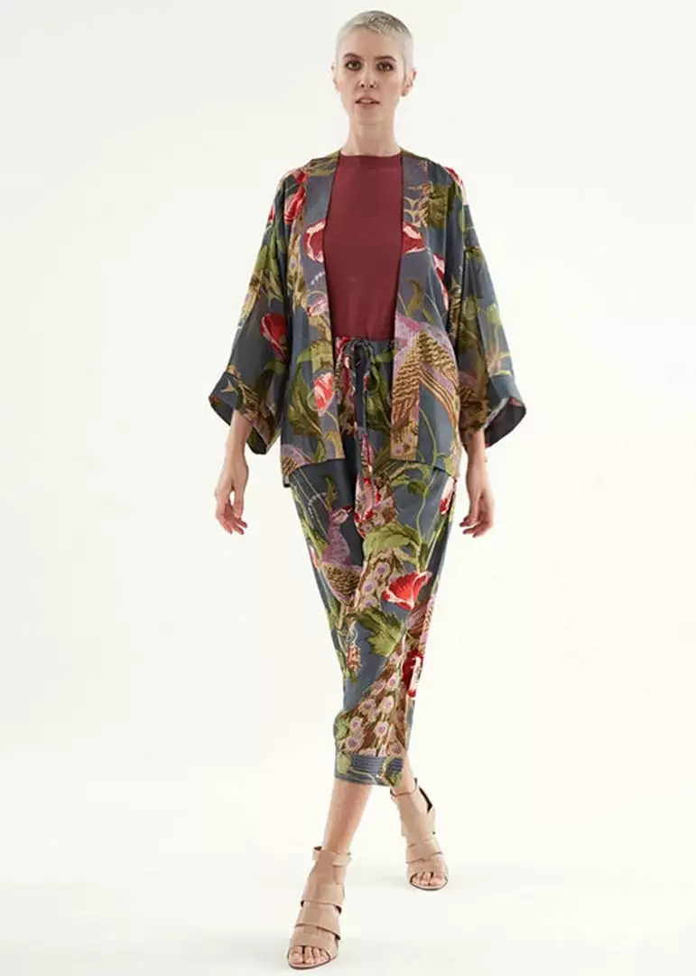 One Hundred Stars Peacock & Poppies Crepe Trousers Grey