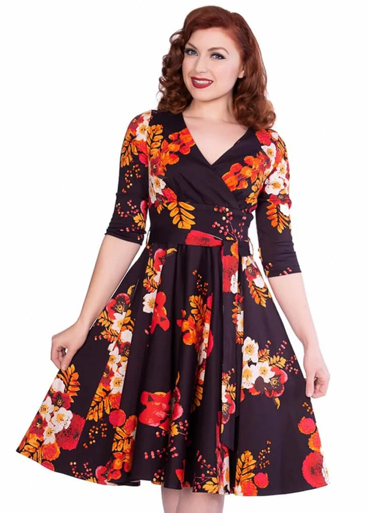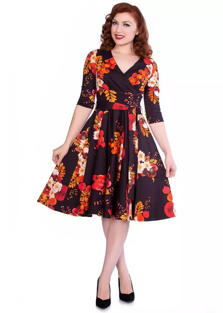 With her romantic flowers on a wine red background and elegant wrap on the chest she’s everything we wish for in a dress. Made of a lovely cotton-mix with a slight stretch she feels so nice to wear that this one will never stay inside your wardrobe for long 😉