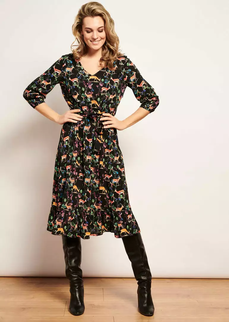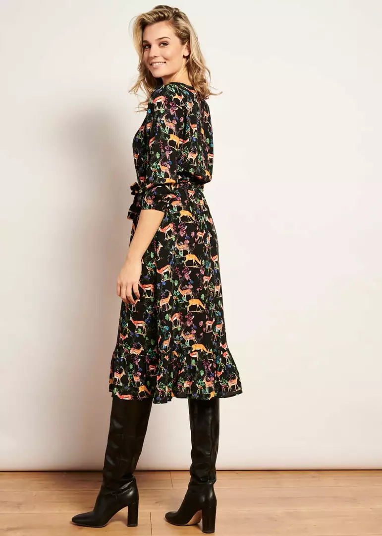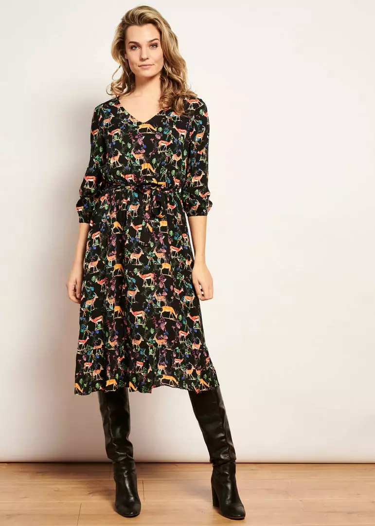 You can find them all in the lovely print of branches and leaves, on a breathable 100% rayon without stretch. The 3/4 sleeves have fine elastic so they’re nicely puffy.