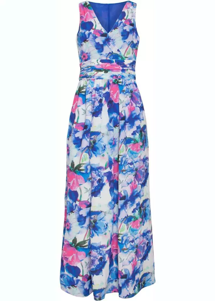Violet Aquarel does her name justice, the double layer of chiffon with no stretch dances around you with the help of a summer breeze, so don’t be surprised when people stare at your outfit all Zen like… The waist is accentuated by a bunch of flat pleats, downwards of which she continues through pleats into a playful maxi skirt which with a height of 1,70 almost hits the floor. She closes with a zipper on the side.