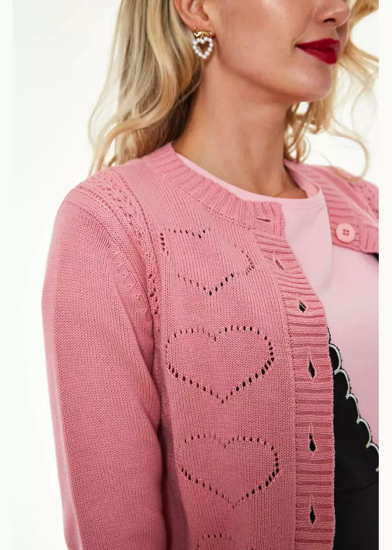 Voodoo Vixen Heart 50’s Cardigan Pink New In